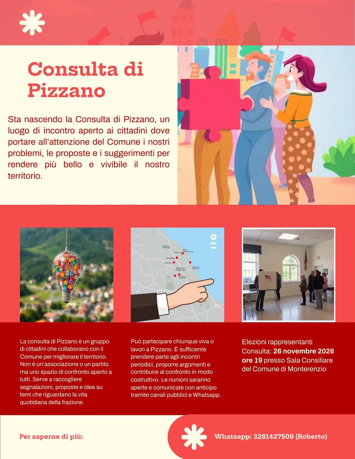 Che cos’è la consulta? Un gruppo di cittadini che collaborano con il Comune per migliorare il territorio, uno spazio di confronto aperto a chiunque desideri dare voce alle esigenze della propria frazione.